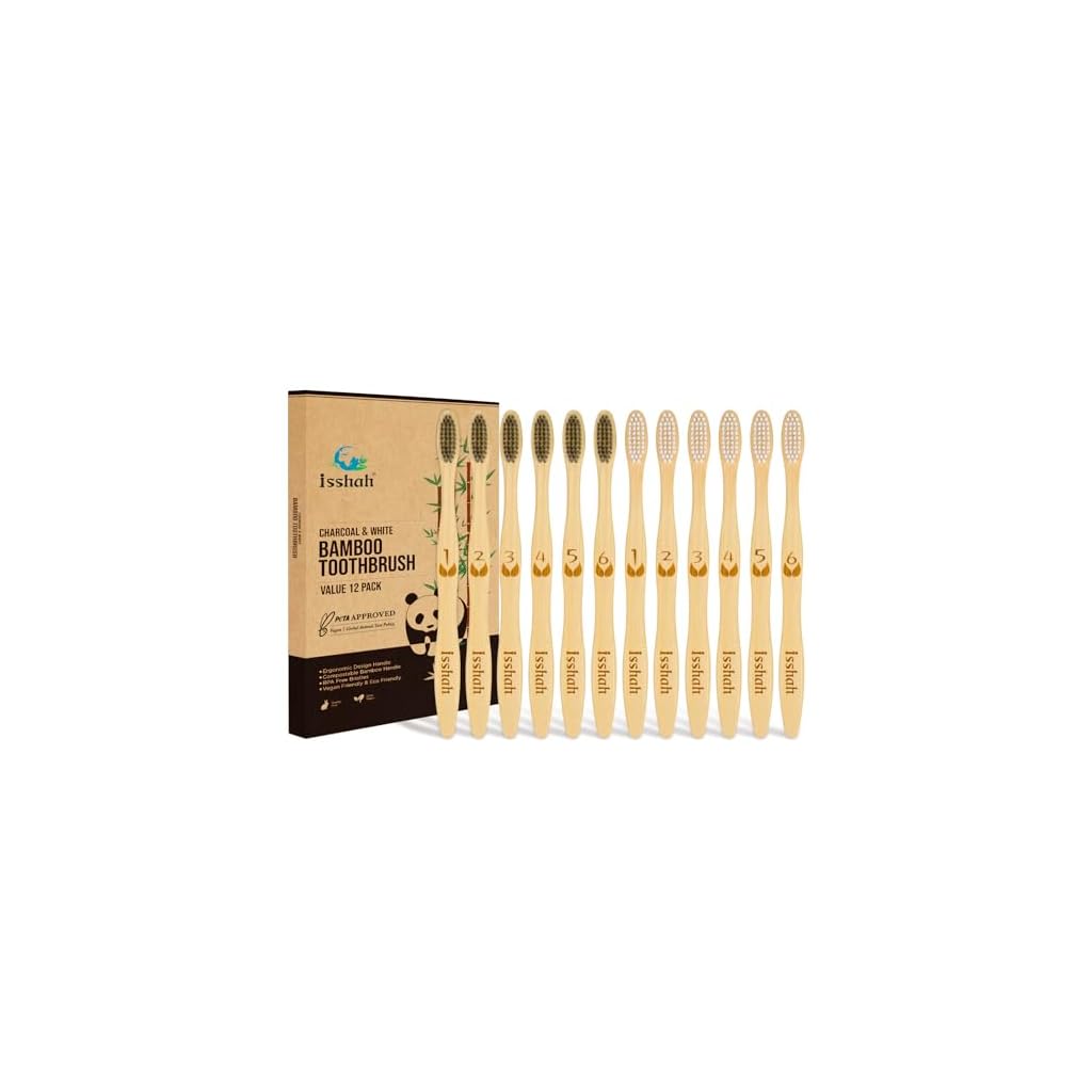 Isshah Biodegradable Eco-Friendly Natural Bamboo Charcoal Toothbrushes, FSC Certified and PETA Approved – 12 Count