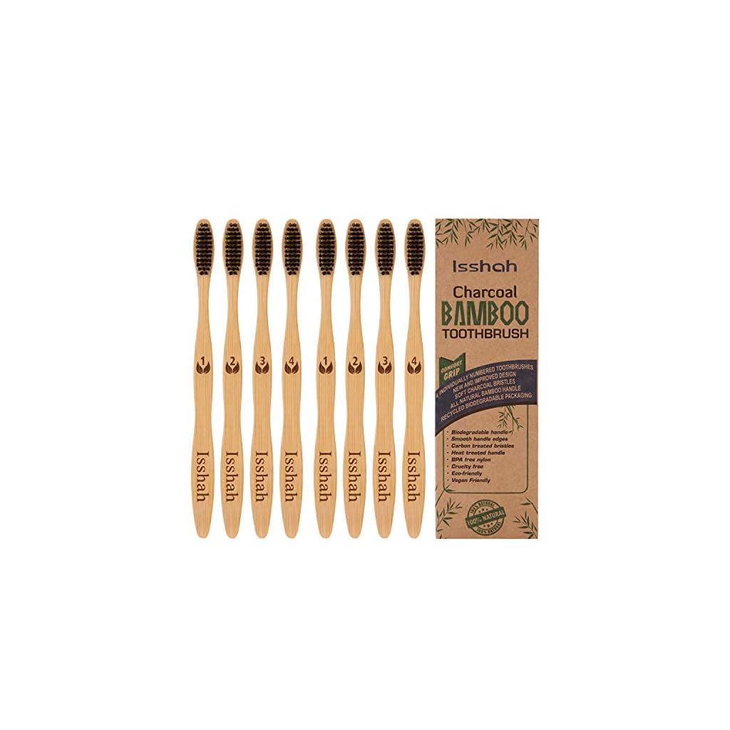 Isshah Biodegradable Eco-Friendly Natural Compostable Bamboo Toothbrushes, FSC Certified and PETA Approved – Pack of 8